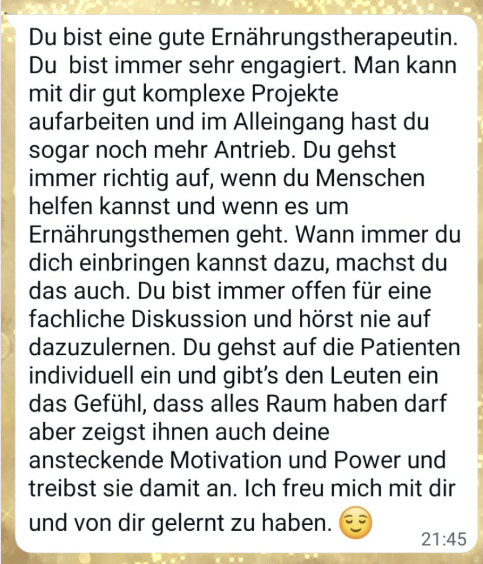 - studierte Ernährungstherapeutin B.Sc. (EU|FH Köln)