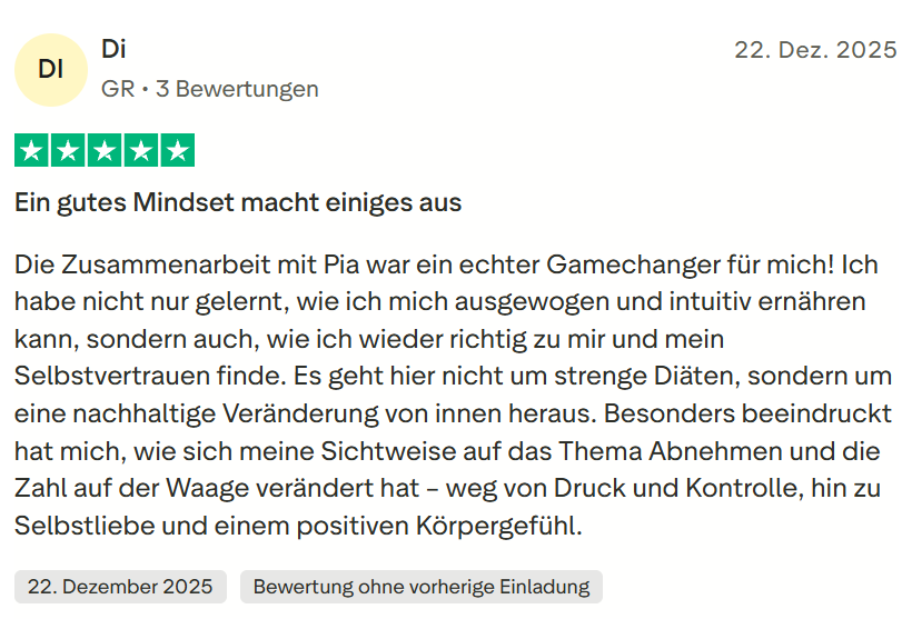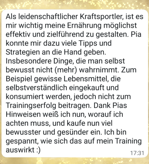 Auch sie kannte sich bereits mit Ernährung aus und ich konnte ihr die richtigen Tools mit an die Hand geben.